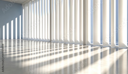 © Nurul, Naklejka premium Empty room with blinds. Sunlight streams through