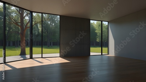© Nadir, Obraz premium empty room with glass window Generative AI