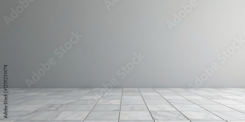 Fototapeta premium Empty Room with Neutral Gray Wall and Tiled Floor Ideal for Product Placement...