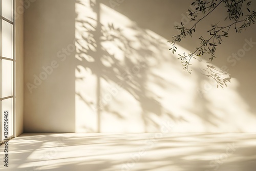 © Md, Obraz premium empty room with shadow on wall and plant.