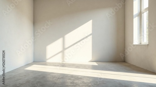 Obraz premium Empty Room with Sunlight Streaming Through a Window Illuminating the Simple Concrete Floor and Walls