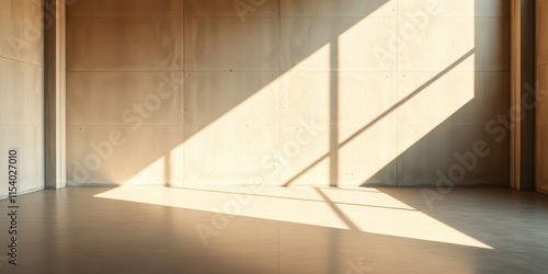 Fototapeta premium Empty Room with Sunlight Streaming Through Windows and Casting Diagonal Shadows on Concrete Walls and Floor