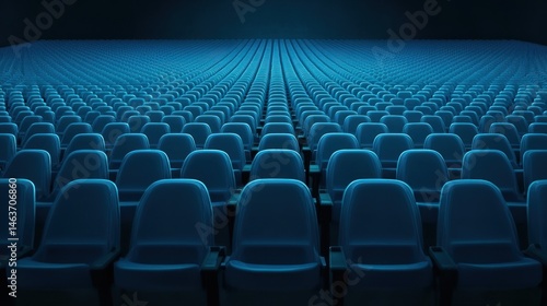 © afridwi, Fototapeta premium Empty rows of blue seats in an auditorium 3 d rendering