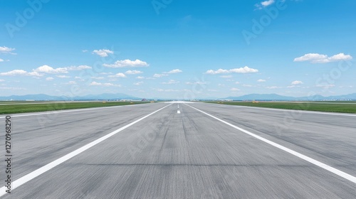 © danadesa, Naklejka premium Empty Runway Under Clear Sky, Perfect for Landing or Takeoff