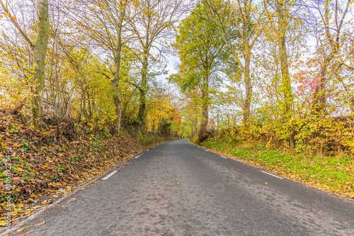 © Emile, Fototapeta premium Empty rural asphalt road among autumn trees