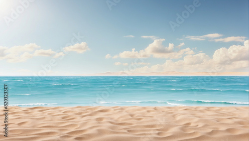 © adynue, Obraz premium Empty sand beach for product display, backdrop with copy space