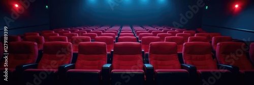 © Wachiraporn, Fototapeta premium Empty seats in a dark cinema theater at night, stillness, dark theater empty seats, silence