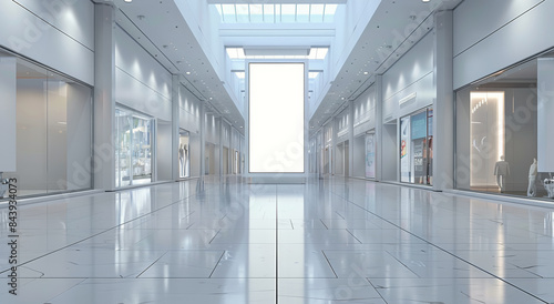 Obraz premium Empty Shopping Mall Corridor With Large Blank Advertisement