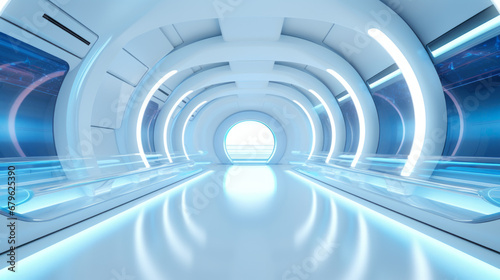 © Alexander Kurilchik, Obraz premium Empty silver tunnel. Technology futuristic background.