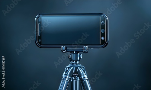 © Surachate, Fototapeta premium Empty Smartphone Screen Mounted on a Tripod in Studio Setting