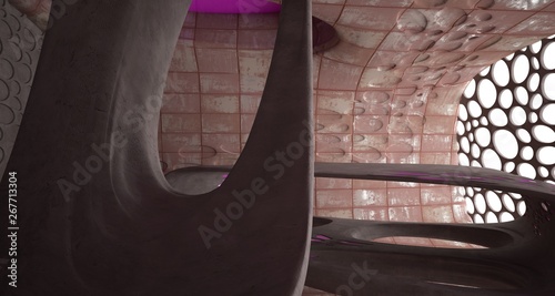 Obraz premium Empty smooth abstract room interior of sheets rusted metal . Architectural background. 3D illustration and rendering