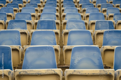 Naklejka premium Empty snow-covered stands of the stadium. Beautiful simple AI generated image in 4K, unique.