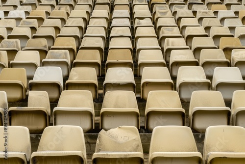 © ArtSpree, Naklejka premium Empty snow-covered stands of the stadium. Beautiful simple AI generated image in 4K, unique.
