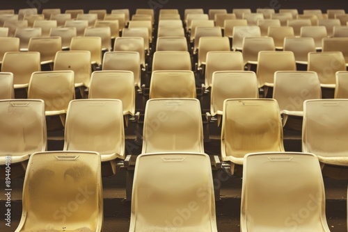 Obraz premium Empty snow-covered stands of the stadium. Beautiful simple AI generated image...