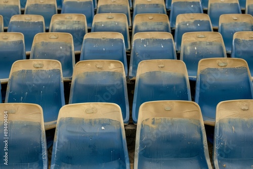 Naklejka premium Empty snow-covered stands of the stadium. Beautiful simple AI generated image...