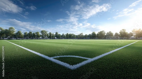 © twilight mist, Obraz premium Empty soccer field under a clear sky.
