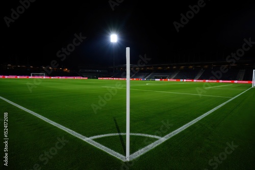 Obraz premium Empty soccer stadium at night corner view