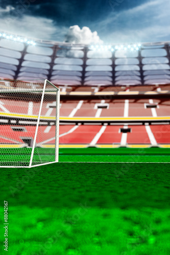 Obraz premium Empty soccer stadium in sunlight