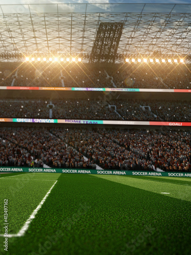 Obraz premium Empty soccer stadium in the evening light