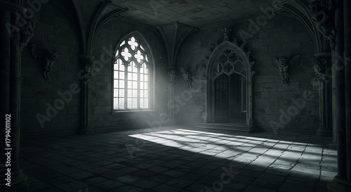 Fototapeta premium Empty square room with Chamber in greatest Gothic castle