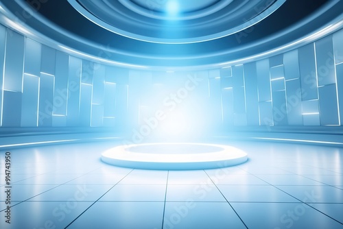 © tracerkamu, Obraz premium Empty stage with blue futuristic interior.