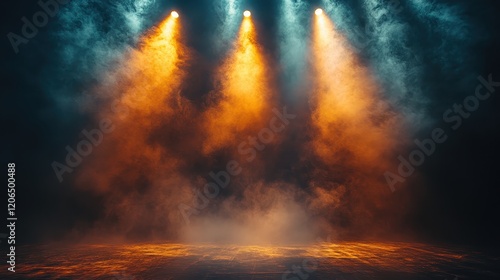 Obraz premium Empty stage with spotlights and smoke, dynamic setting for presentations and performances