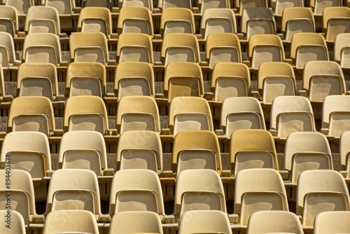 Naklejka premium Empty stands and seats for fans and fans in the open-air stadium. Lack of fans during the pandemic.. Beautiful simple AI generated image in 4K, unique.