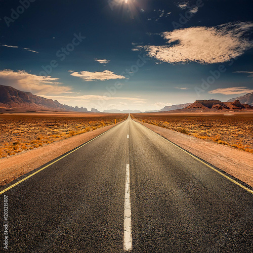 Fototapeta premium Empty straight asphalt road in the desert