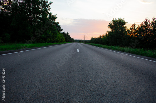 © Seva_001, Fototapeta premium Empty straight road at sunrise