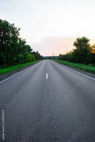 © Seva_001, Fototapeta premium Empty straight road at sunrise