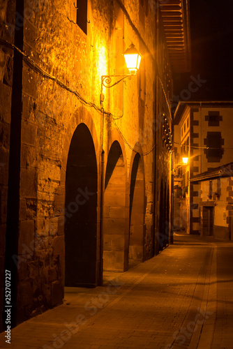 Fototapeta premium Empty street at night, Baztan, Navarra, Spain,