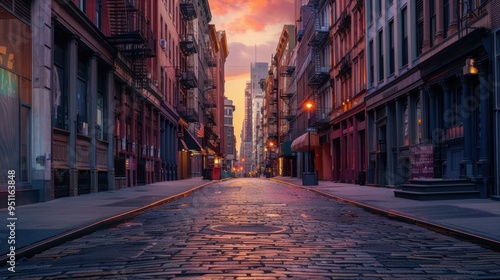 © yachyah, Fototapeta premium Empty Street in New York City at Dawn