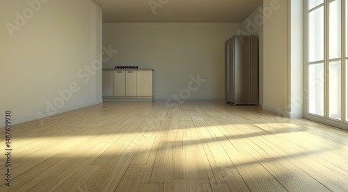 Fototapeta premium Empty, sunlit room with hardwood floors