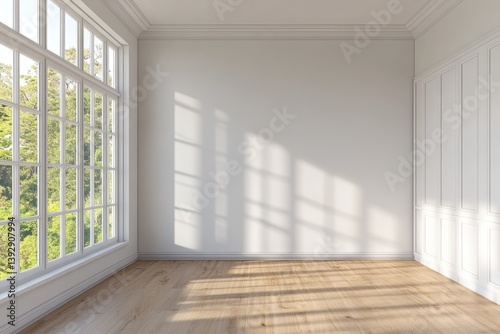 © Graphicsfuelstd, Obraz premium Empty sunlit room with large window