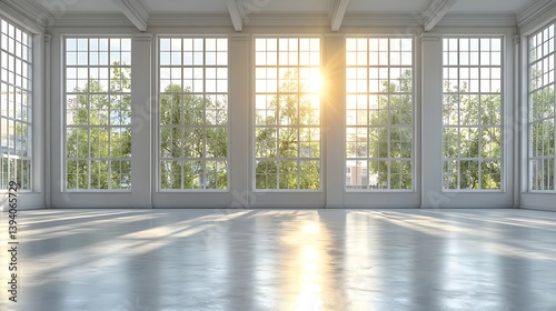 Obraz premium Empty sunlit room with large windows