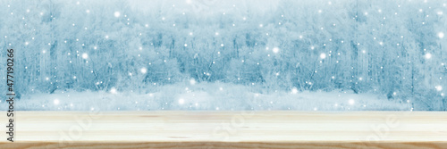 © MaskaRad, Obraz premium empty table on a winter background. space for your object. table