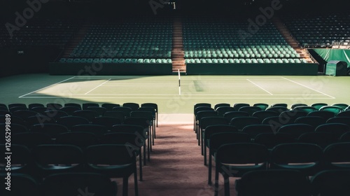 © Umi Sakina, Naklejka premium Empty tennis court stadium, sunlit