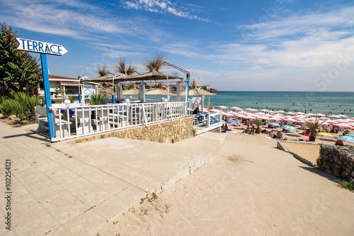 © Pellinni, Obraz premium empty terrace near the sea beach