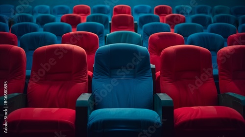 Fototapeta premium Empty Theater With Red and Blue Seats.