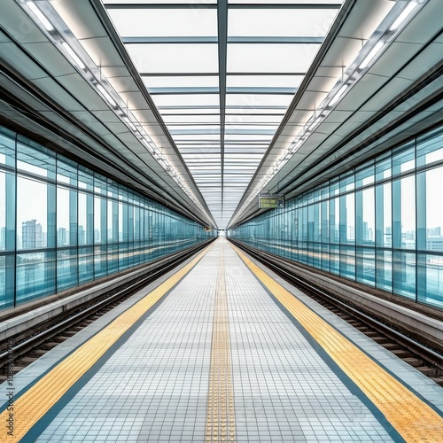 © jambulart, Obraz premium Empty train station platform with glass walls.