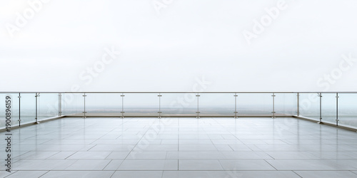 Fototapeta premium empty transparent glass terrace floor with frameless railings for sky high...