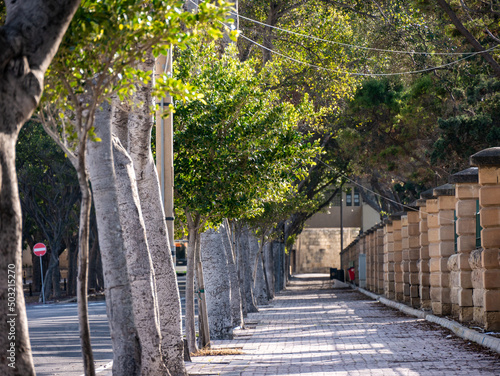© Marko, Obraz premium Empty tree-lined street. Valletta