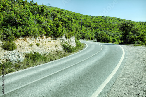 Fototapeta premium Empty two lane asphalt road highway vanishing in perspective