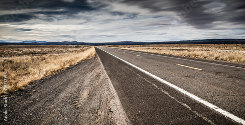 © JeanLuc Ichard, Naklejka premium Empty U.S road on a stormy weather day