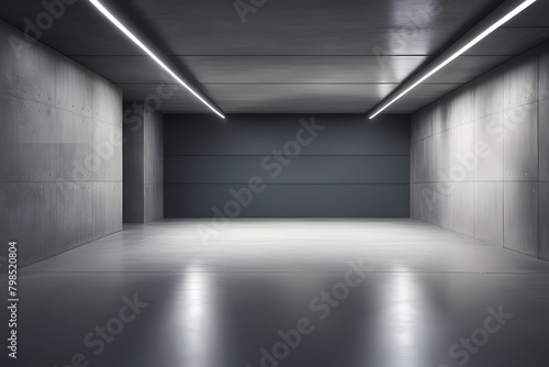 Fototapeta premium Empty underground garage with blank space and gray walls into modern...