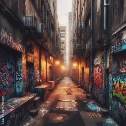 Fototapeta premium empty urban alleys where weathered walls