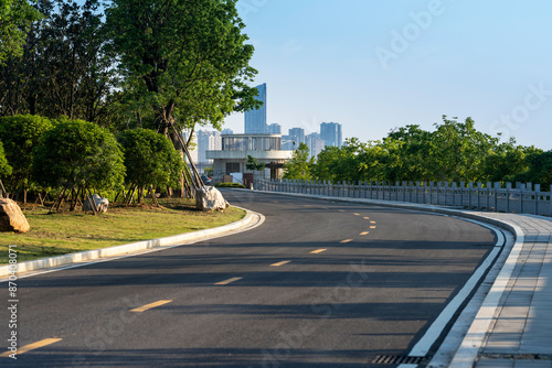 © gjp311, Fototapeta premium Empty urban road and buildings in the city