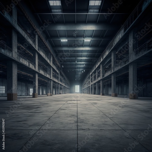 © ern, Obraz premium Empty warehouse/car parking area. Generative AI.