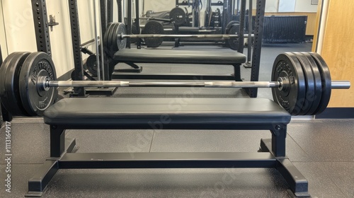 Fototapeta premium Empty weight bench with barbell in a gym.