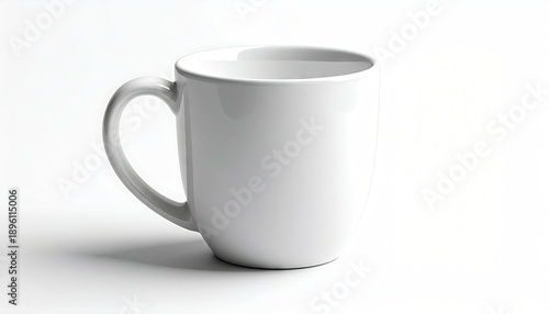 Obraz premium Empty white ceramic mug casting shadow on bright white surface in studio,...